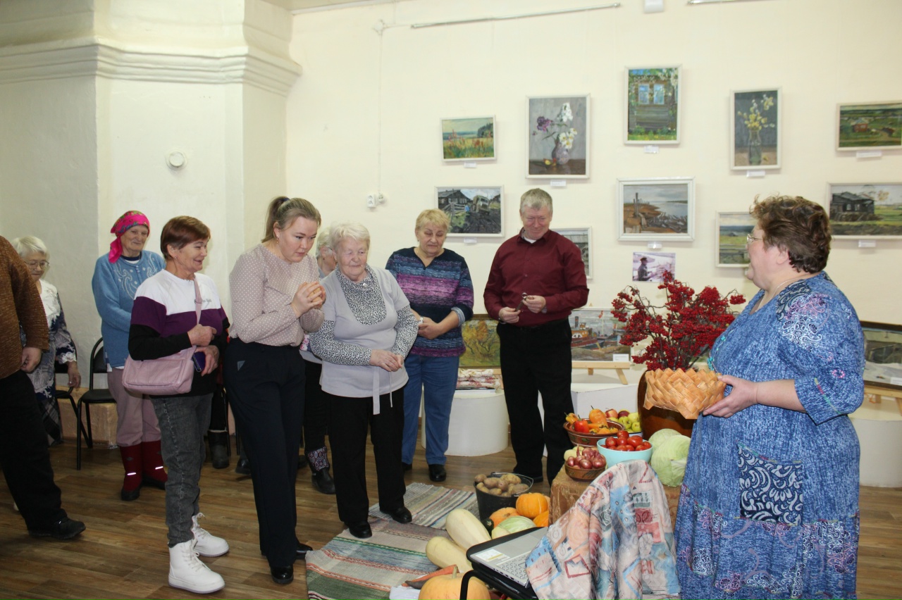 А вот и главная тема «Чомȍра» — экспозиция богатейшего осеннего урожая! А еще — блюда, рецепты, рассказы о вековых традициях и нынешних подходах к огородному делу и кулинарии. Да и мы, гости, приехали не с пустыми руками, привезли с собой выпечку, соленья, варенья, сладости… Продегустировали угощение – капусту с неповторимым вкусом и ароматом, приготовленную на костре А.Д.Тюрниным. Были проведены различные конкурсы, викторины, игры. В зале царила теплая атмосфера, наполненная хорошим настроением и песнями под тульскую гармонь.