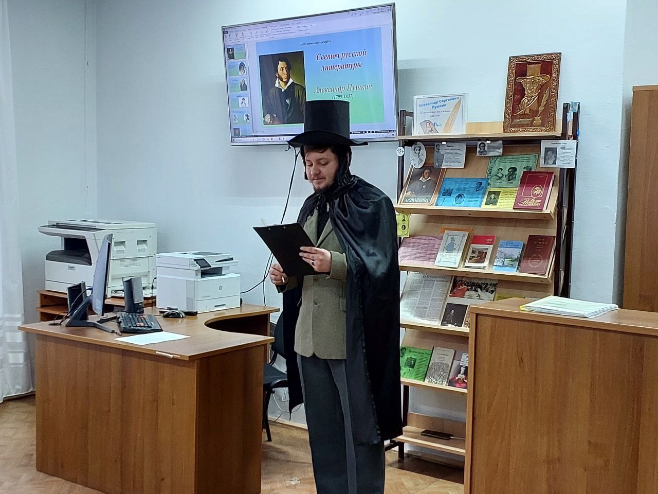 Для литературного путешествия была оформлена книжная выставка «Хранимый памятью народа», которая стала дополнением к погружению в пушкинскую эпоху.