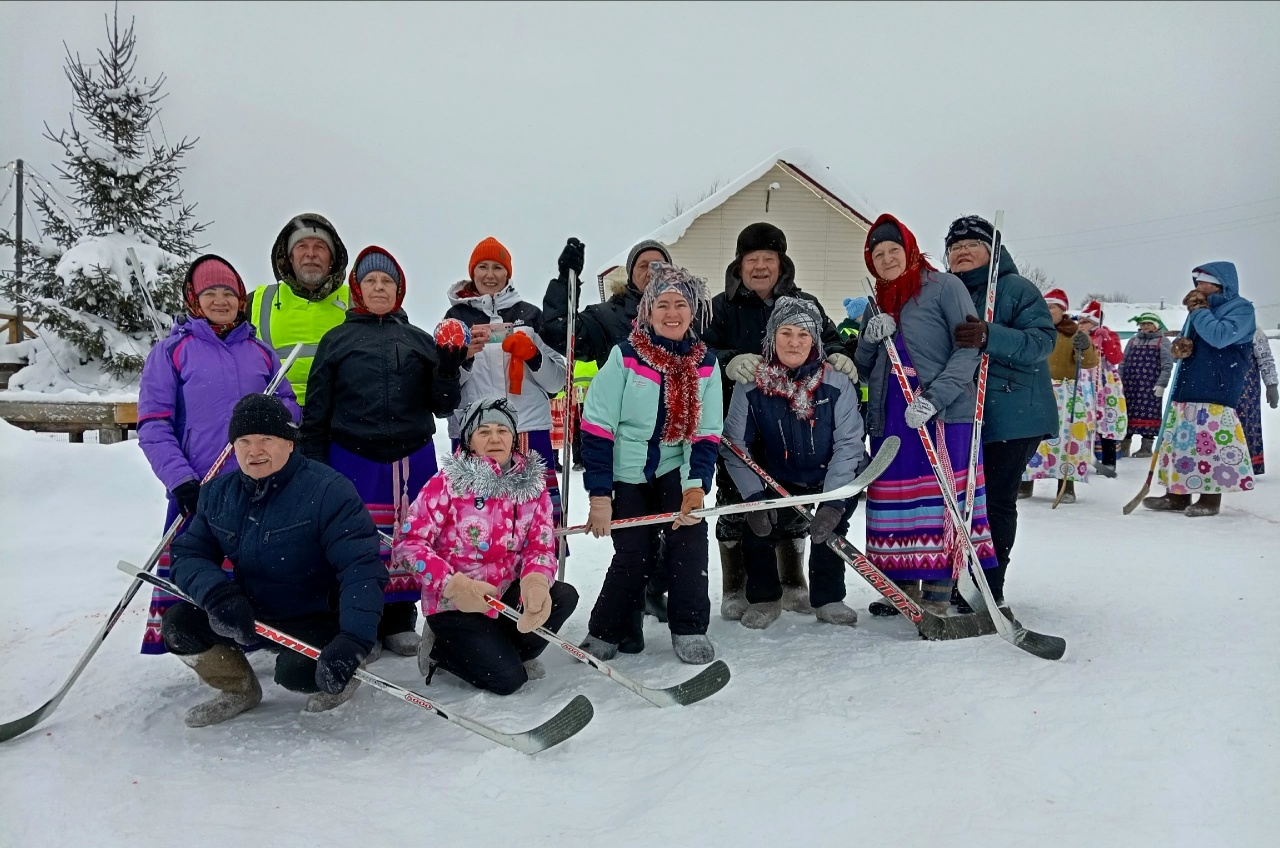 Итак, 25 января в полдень гостевой двор «Майбыра» наполнился весёлыми приветствиями и обнимашками ветеранов Богородска, Нившеры, Аджерома, Небдино, Сторожевска и Подтыбка. Яркие наряды спортсменов уже мелькали на улице. Все готовились к игре «ХОККЕЙ НА СНЕГУ В ВАЛЕНКАХ».