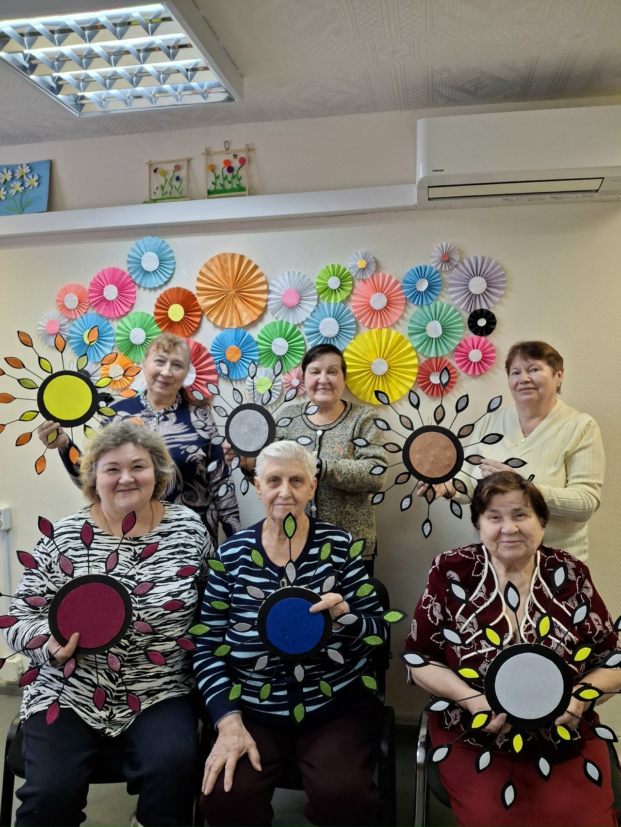 В первых числах февраля в Центре общения старшего поколения Княжпогостского района для председателей первичек, волонтёров и активных пенсионеров был организован  мастер-класс по изготовлению настенного декора «Солнышко разноцветное». Участники активно включились в  процесс создания декора, помогали друг другу в вырезании, склеивании элементов, подборки цвета. Было очень весело и поучительно.