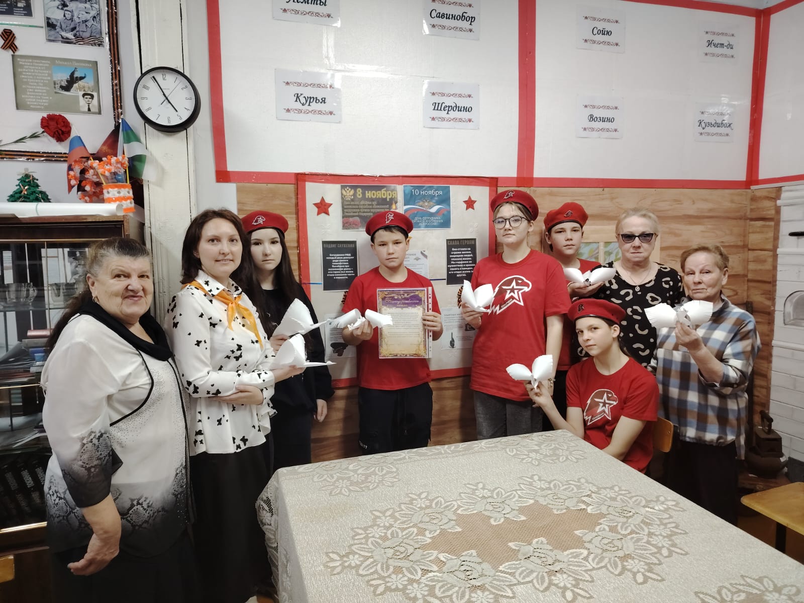 В память обо всех погибших героях прошла акция «Минута молчания» и «Журавли памяти» — юнармейцы изготовили бумажных журавлей как символ бессмертия.