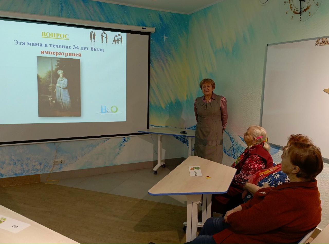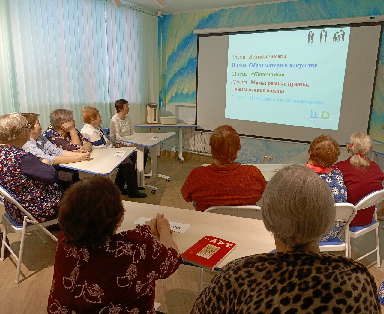 Собравшиеся узнали об истории и традициях праздника. Затем провели интеллектуальную игру. Ветеранам были предложены вопросы по пяти темам: «Великие мамы», «Образ матери в искусстве», «Киномамы», «Мамы разные нужны, мамы всякие важны», «Из песни слов не выкинешь». Игра получилась яркой, познавательной и веселой. А после душевно исполнили замечательные песни о мамах, используя слова из вопросов пятой темы. Председатель первички поселка Мещура Тамара Ивановна Дмитренко прочла свои стихи.
